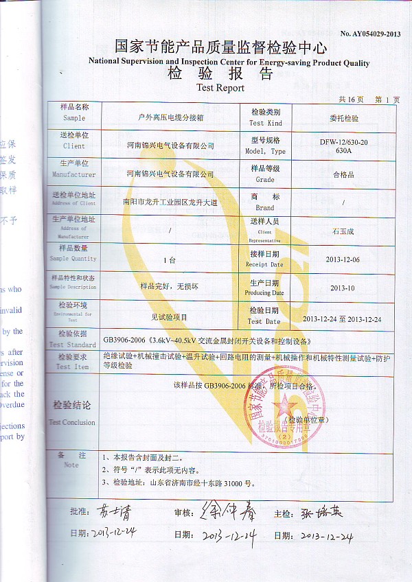 產(chǎn)品試驗(yàn)報(bào)告